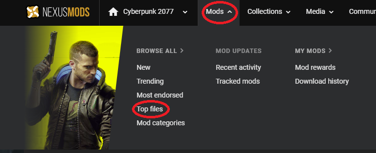 2. 넥서스 모드 가입 후 로그인 > Cyberpunk 2077 클릭