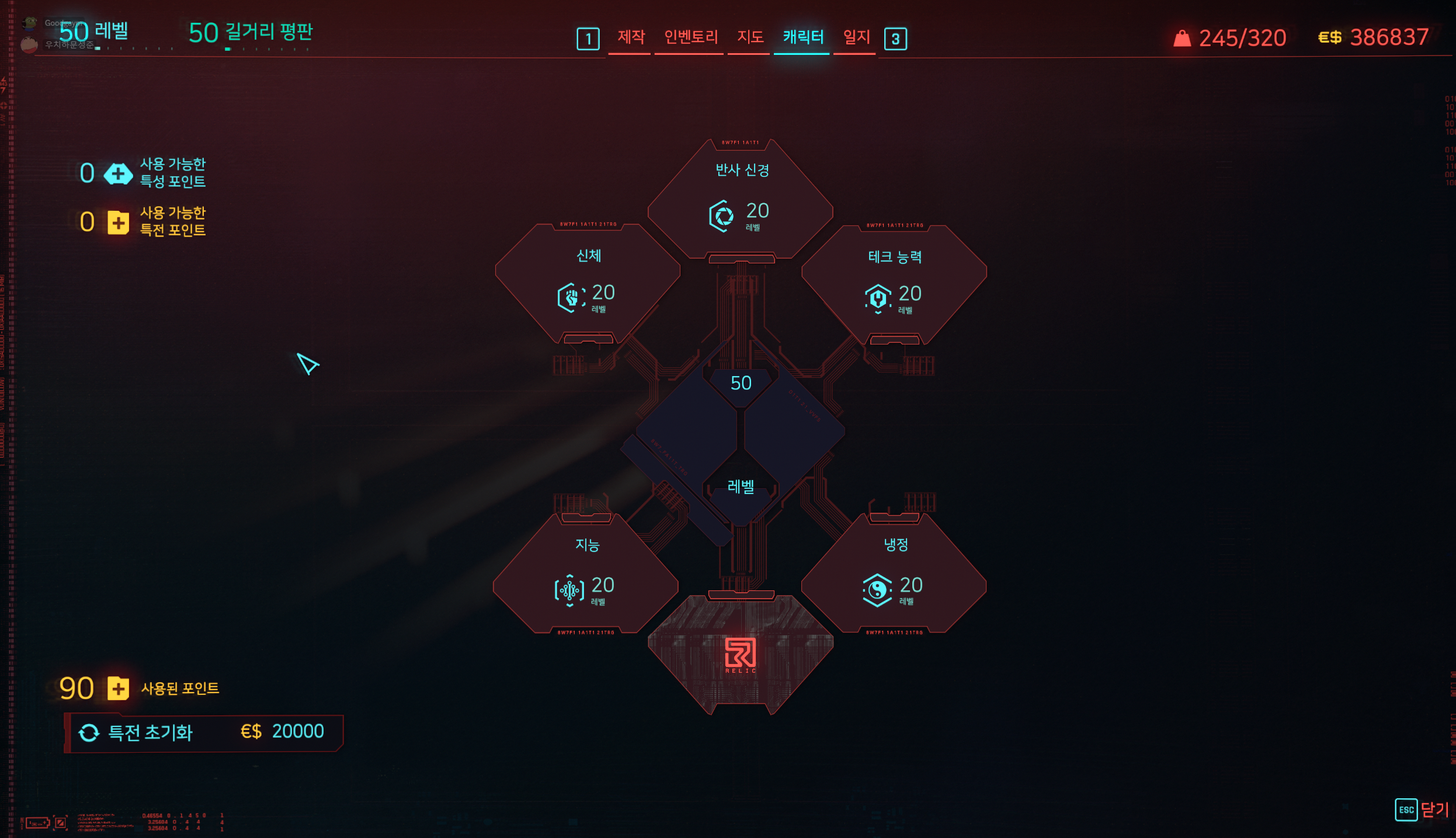 이렇게 모든 특성을 20으로 올리거나 원하는 만큼 올릴 수 있습니다.